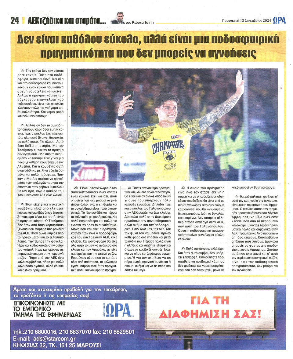 ΑΘΛΗΤΙΚΗ ΩΡΑ ΤΩΝ ΣΠΟΡ - 13 Δεκεμβρίου 2024