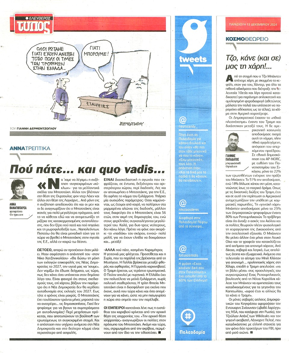 ΕΛΕΥΘΕΡΟΣ ΤΥΠΟΣ - 13 Δεκεμβρίου 2024
