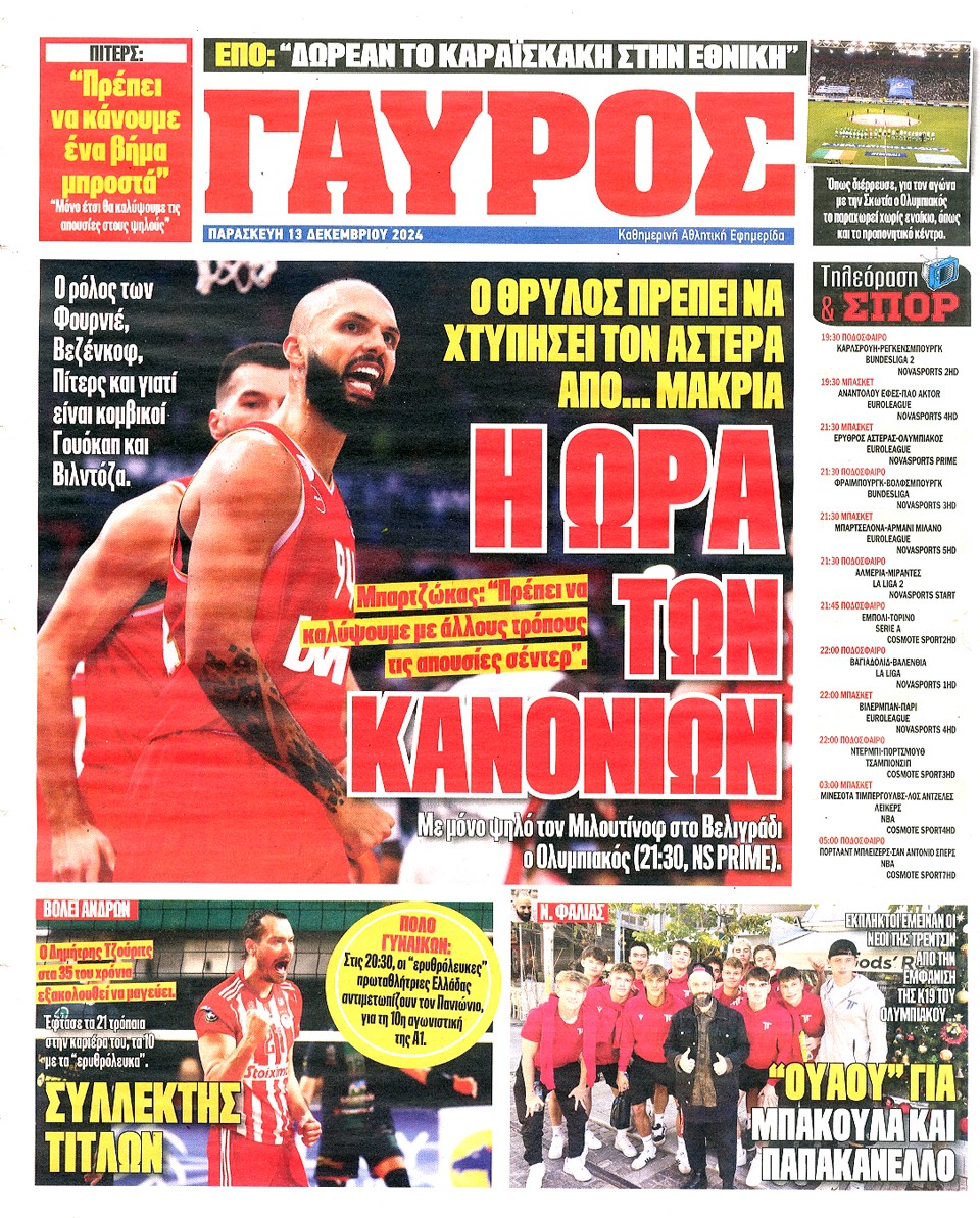 ΠΡΩΤΑΘΛΗΤΗΣ - 13 Δεκεμβρίου 2024