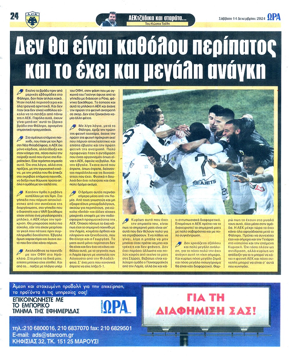 ΑΘΛΗΤΙΚΗ ΩΡΑ ΤΩΝ ΣΠΟΡ - 14 Δεκεμβρίου 2024