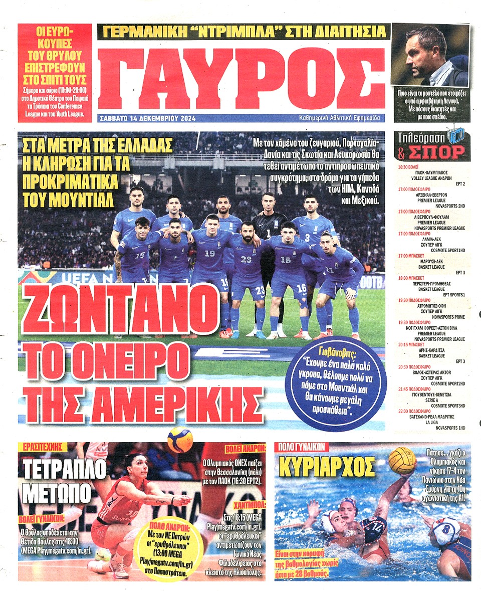 ΠΡΩΤΑΘΛΗΤΗΣ - 14 Δεκεμβρίου 2024