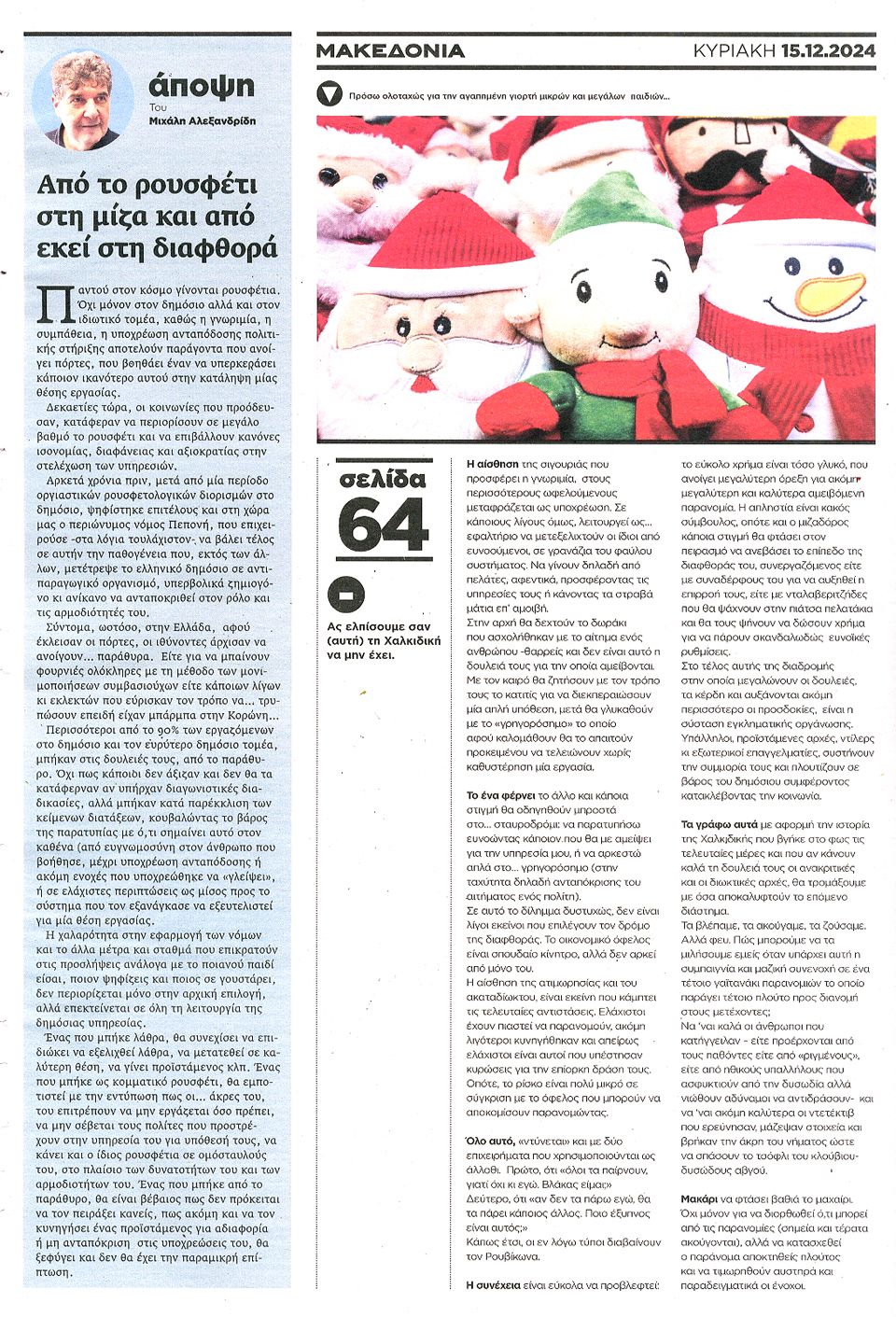 ΜΑΚΕΔΟΝΙΑ ΤΗΣ ΚΥΡΙΑΚΗΣ - 15 Δεκεμβρίου 2024