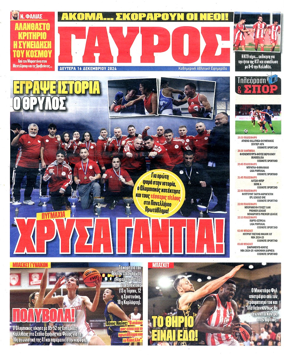 ΠΡΩΤΑΘΛΗΤΗΣ - 16 Δεκεμβρίου 2024