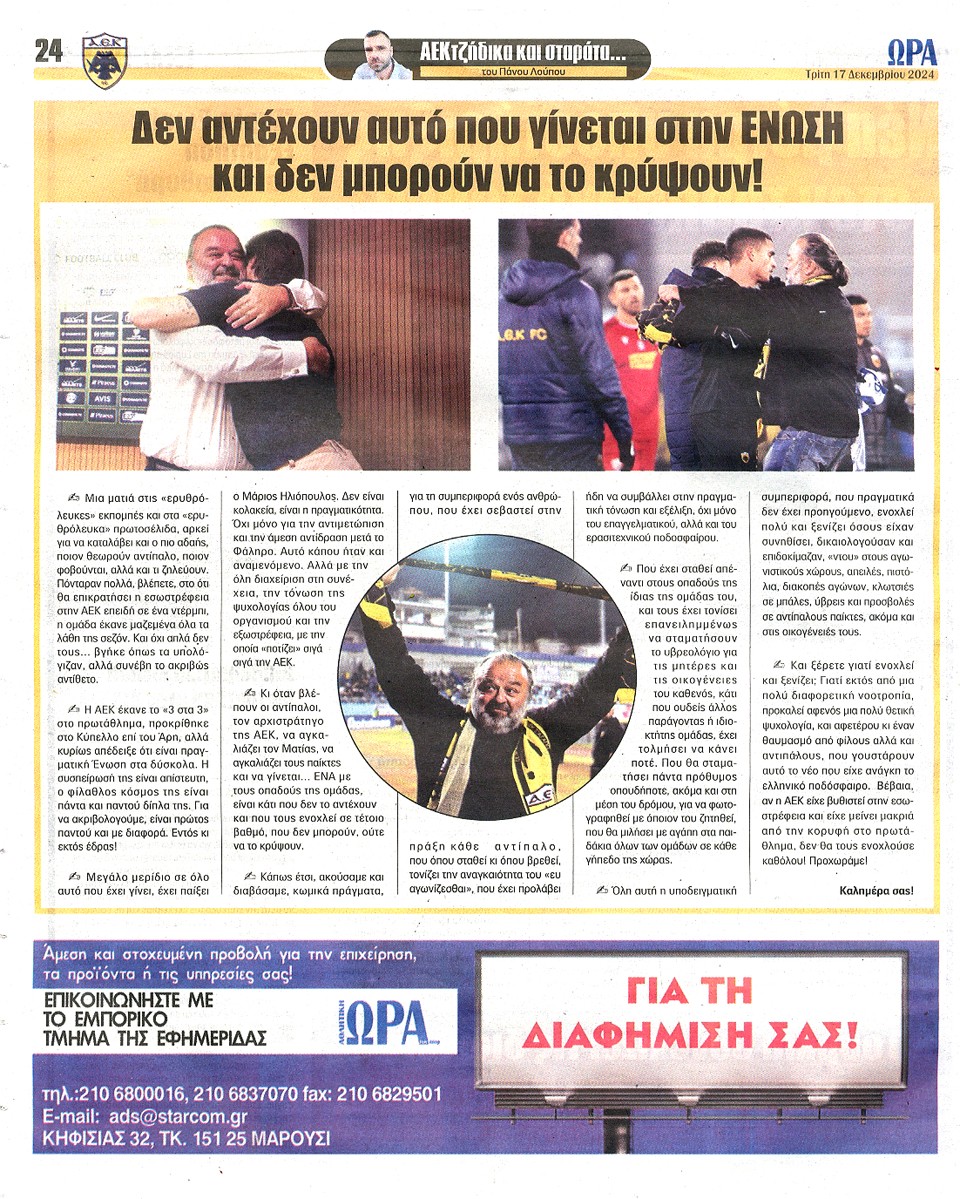 ΑΘΛΗΤΙΚΗ ΩΡΑ ΤΩΝ ΣΠΟΡ - 17 Δεκεμβρίου 2024