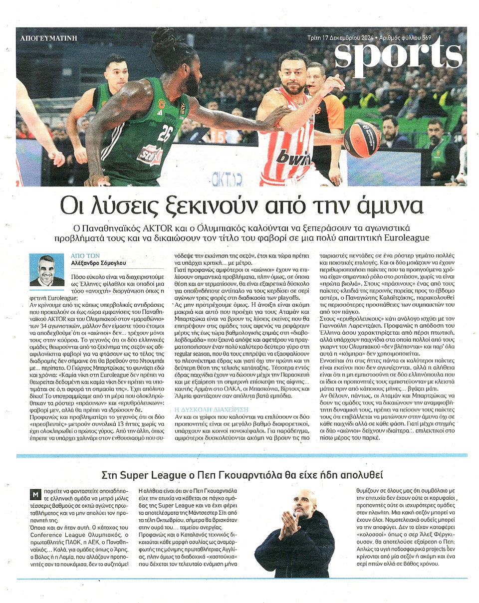 ΑΠΟΓΕΥΜΑΤΙΝΗ - 17 Δεκεμβρίου 2024