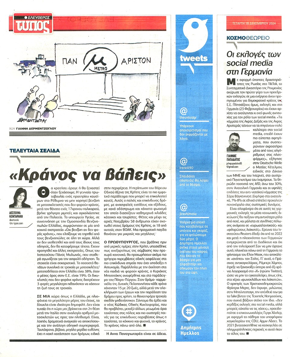 ΕΛΕΥΘΕΡΟΣ ΤΥΠΟΣ - 18 Δεκεμβρίου 2024