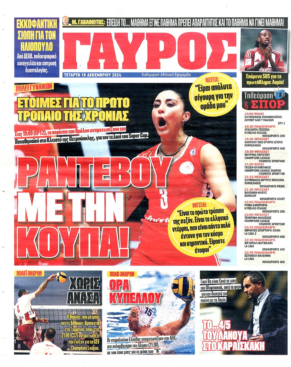 ΠΡΩΤΑΘΛΗΤΗΣ - 18 Δεκεμβρίου 2024