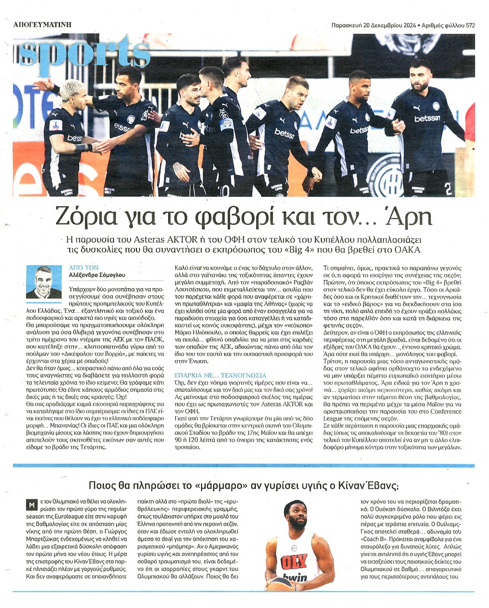 ΑΠΟΓΕΥΜΑΤΙΝΗ - 20 Δεκεμβρίου 2024