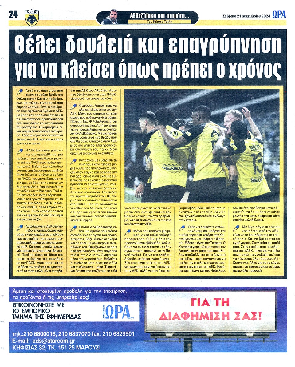 ΑΘΛΗΤΙΚΗ ΩΡΑ ΤΩΝ ΣΠΟΡ - 21 Δεκεμβρίου 2024