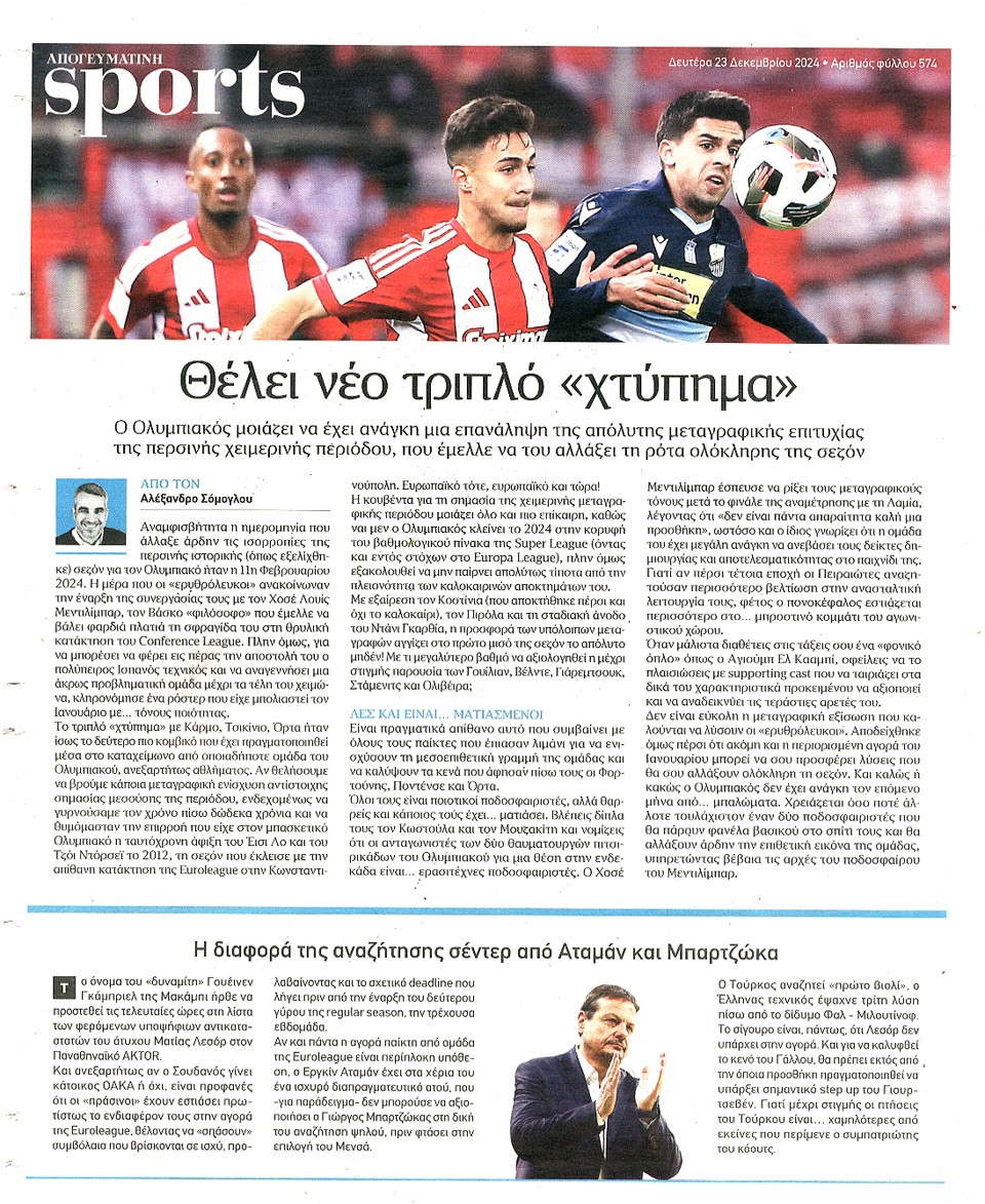 ΑΠΟΓΕΥΜΑΤΙΝΗ - 23 Δεκεμβρίου 2024