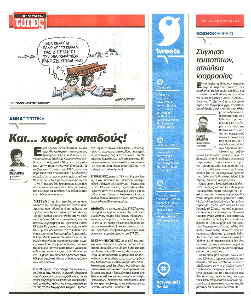 ΕΛΕΥΘΕΡΟΣ ΤΥΠΟΣ - 23 Δεκεμβρίου 2024