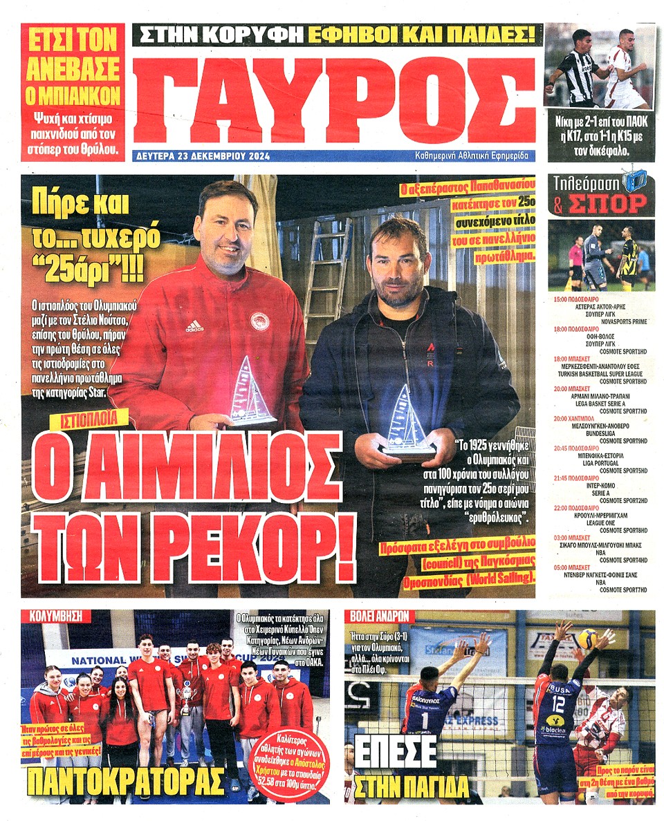 ΠΡΩΤΑΘΛΗΤΗΣ - 23 Δεκεμβρίου 2024