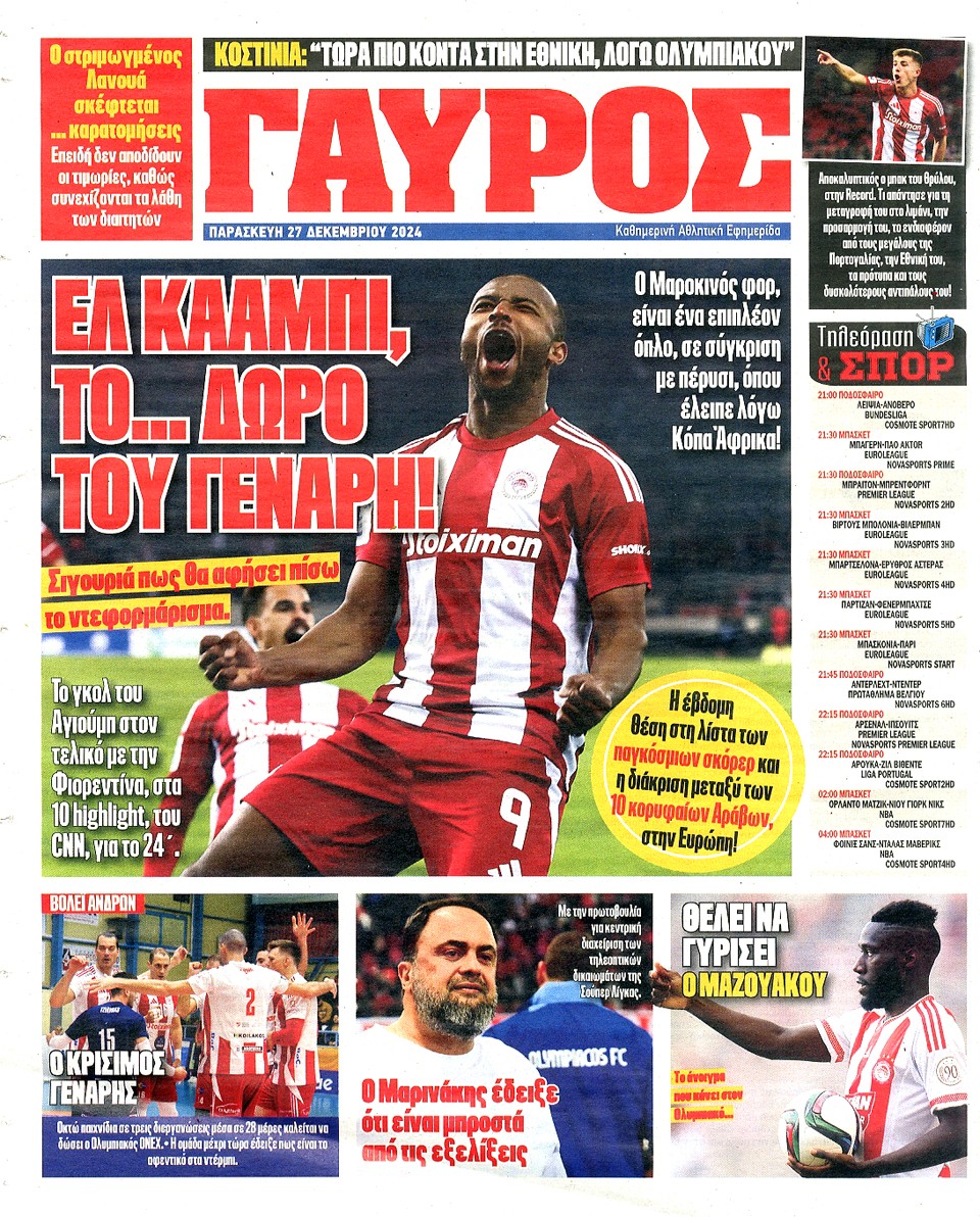 ΠΡΩΤΑΘΛΗΤΗΣ - 27 Δεκεμβρίου 2024