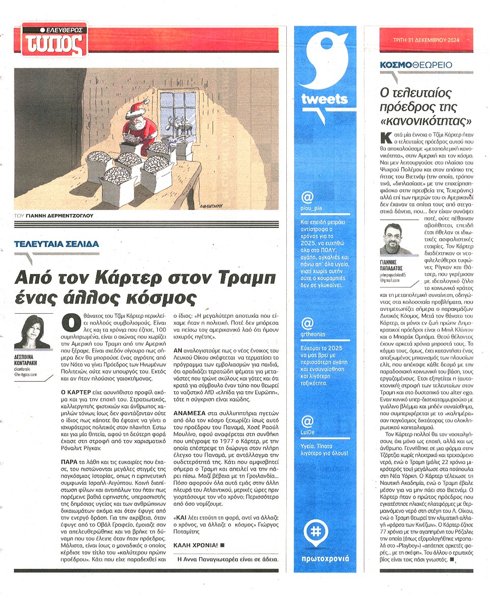 ΕΛΕΥΘΕΡΟΣ ΤΥΠΟΣ - 31 Δεκεμβρίου 2024
