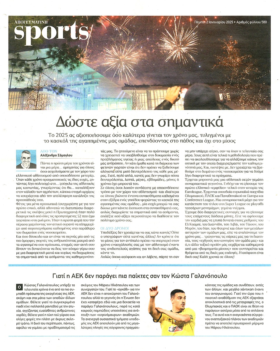 ΑΠΟΓΕΥΜΑΤΙΝΗ - 02 Ιανουαρίου 2025