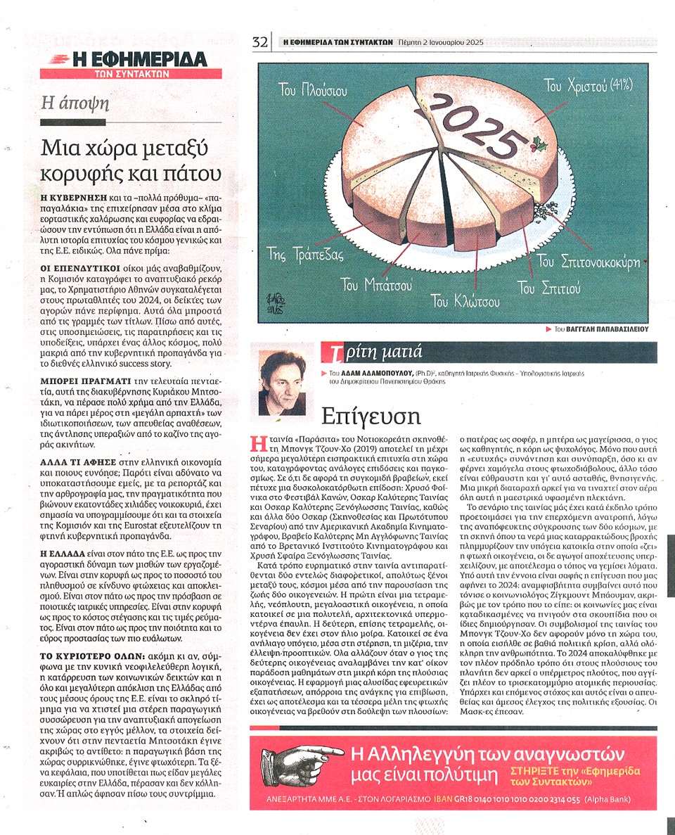 Η ΕΦΗΜΕΡΙΔΑ ΤΩΝ ΣΥΝΤΑΚΤΩΝ - 02 Ιανουαρίου 2025