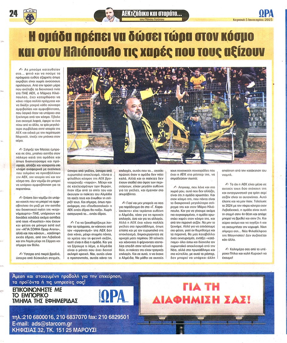 ΑΘΛΗΤΙΚΗ ΩΡΑ ΤΩΝ ΣΠΟΡ - 05 Ιανουαρίου 2025
