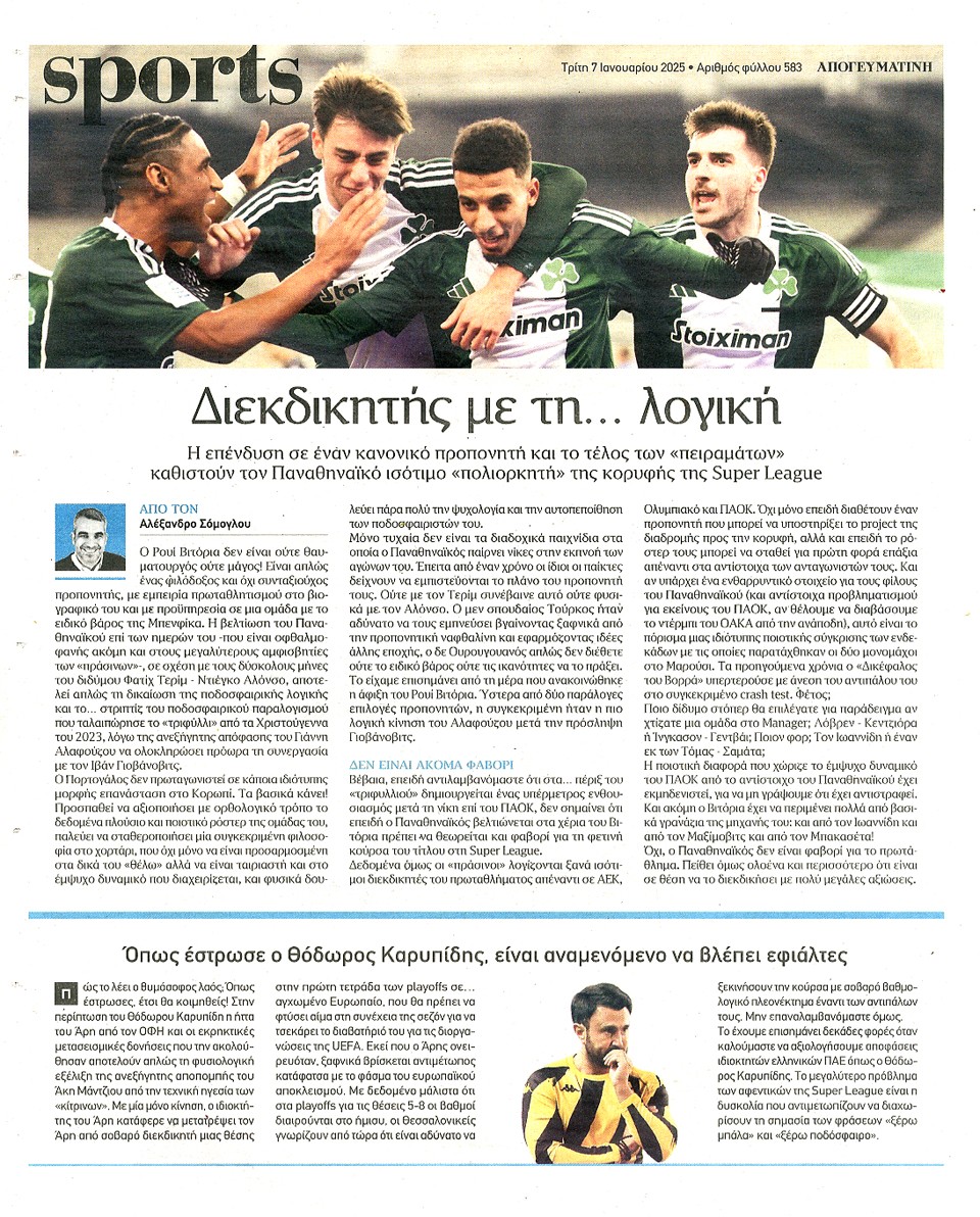 ΑΠΟΓΕΥΜΑΤΙΝΗ - 07 Ιανουαρίου 2025
