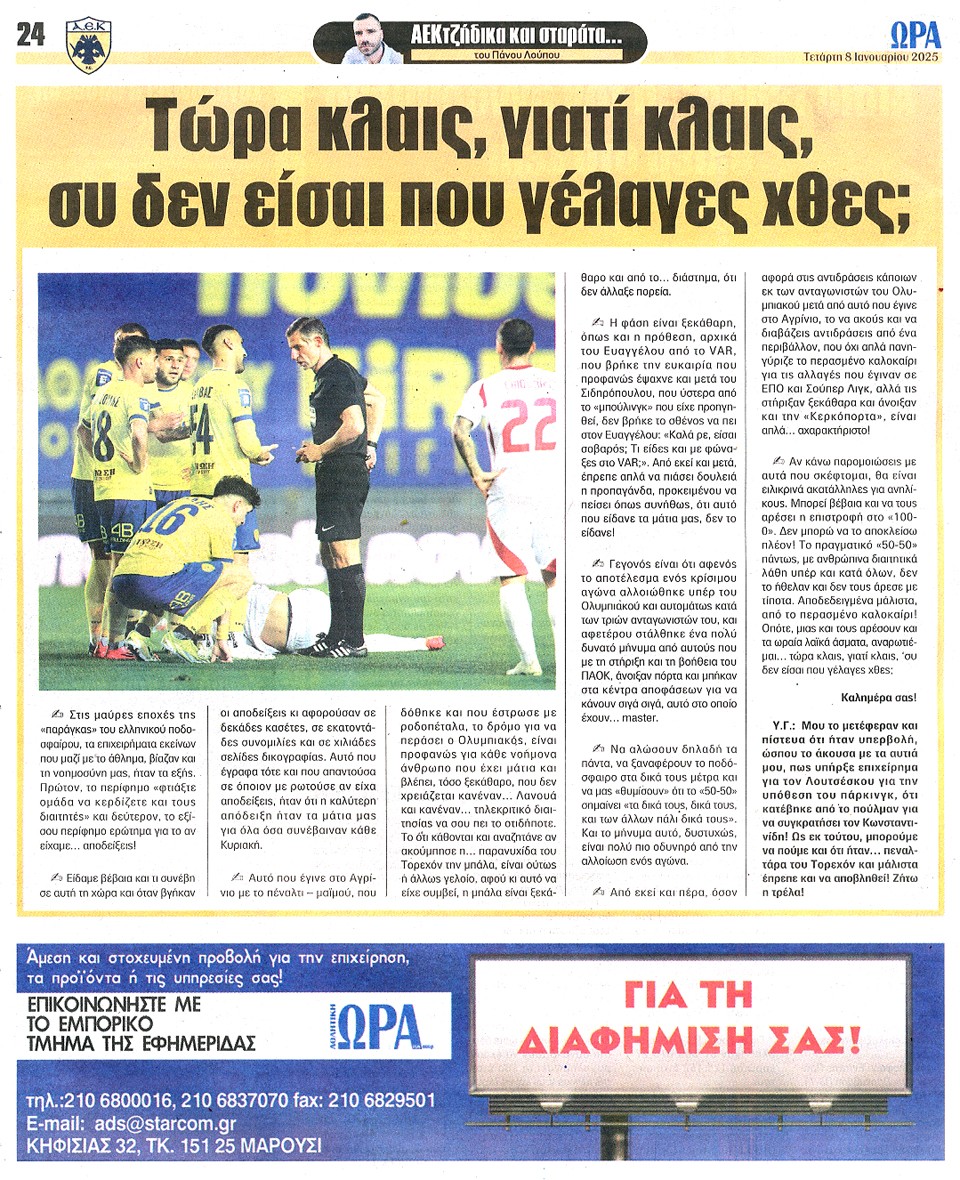 ΑΘΛΗΤΙΚΗ ΩΡΑ ΤΩΝ ΣΠΟΡ - 08 Ιανουαρίου 2025