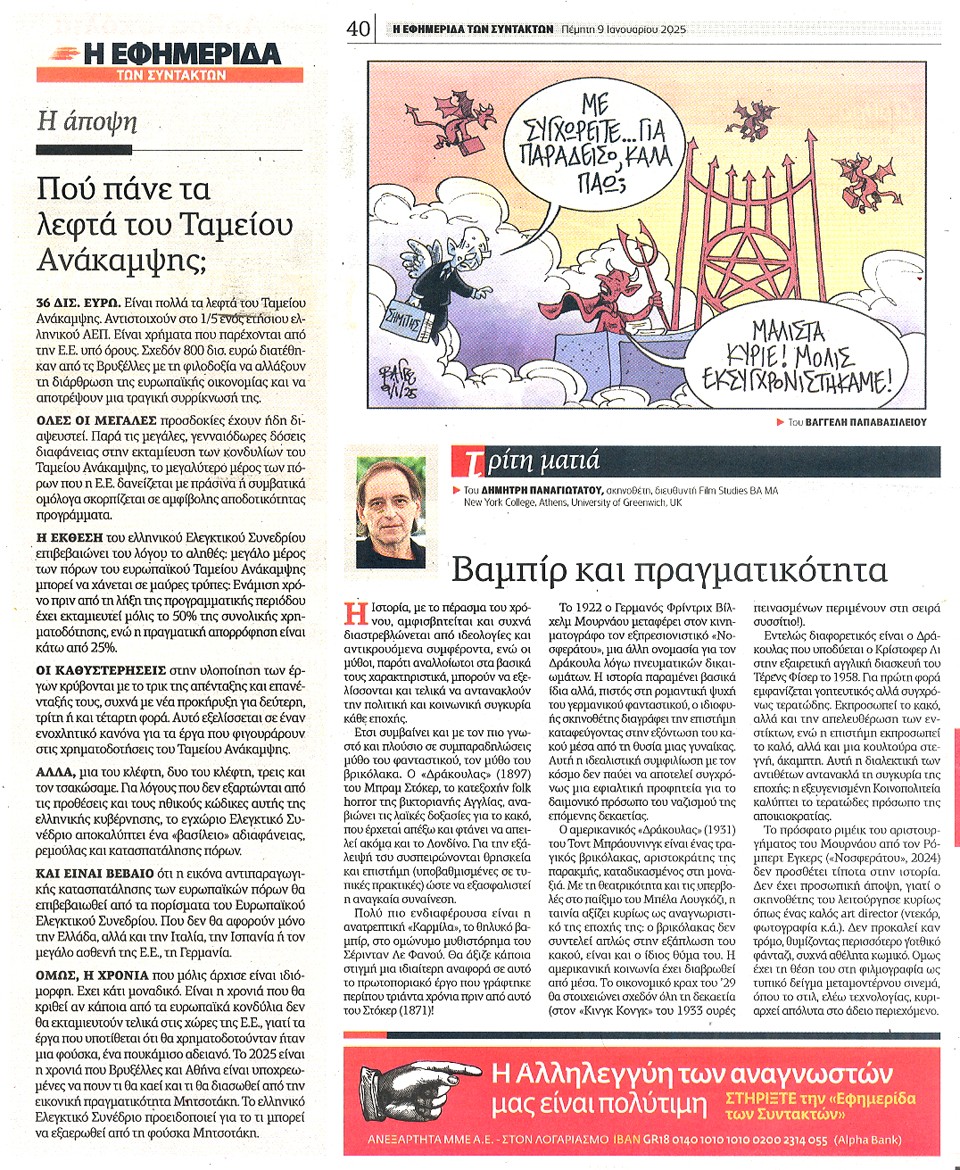 Η ΕΦΗΜΕΡΙΔΑ ΤΩΝ ΣΥΝΤΑΚΤΩΝ - 09 Ιανουαρίου 2025