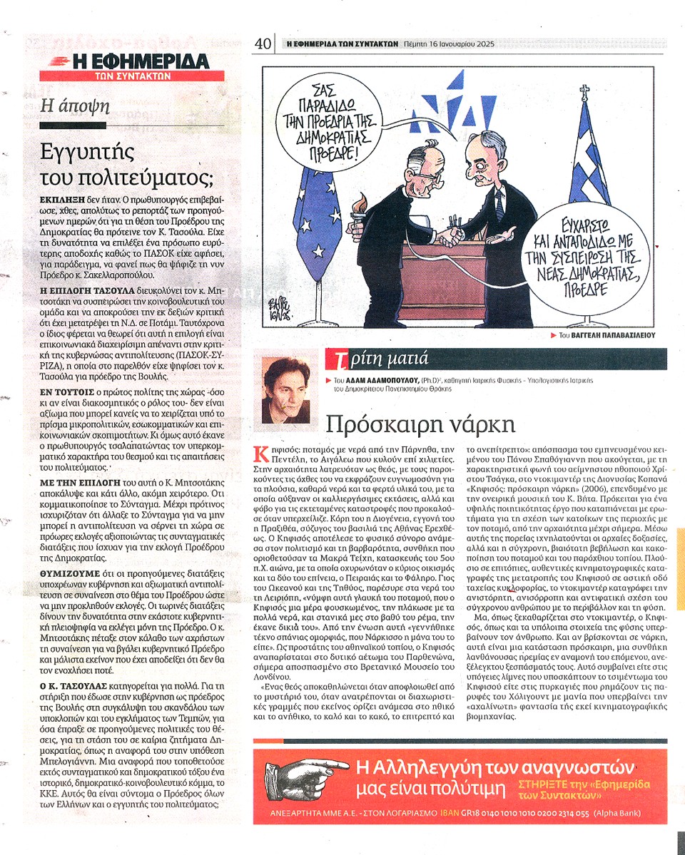 Η ΕΦΗΜΕΡΙΔΑ ΤΩΝ ΣΥΝΤΑΚΤΩΝ - 16 Ιανουαρίου 2025