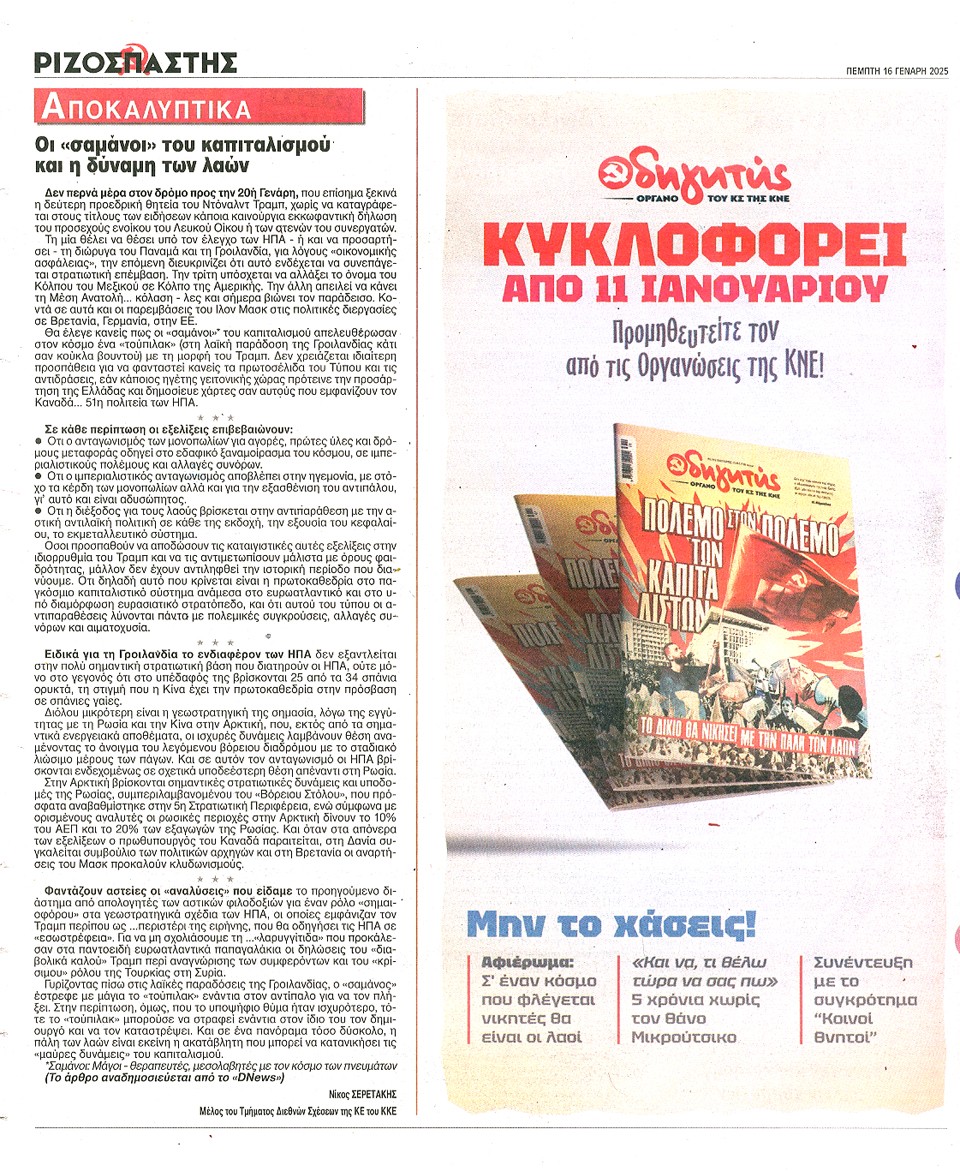 ΡΙΖΟΣΠΑΣΤΗΣ - 16 Ιανουαρίου 2025