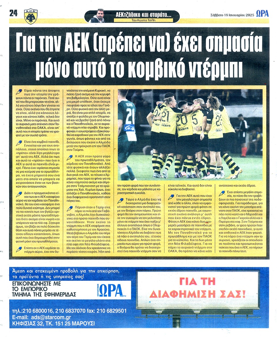 ΑΘΛΗΤΙΚΗ ΩΡΑ ΤΩΝ ΣΠΟΡ - 18 Ιανουαρίου 2025
