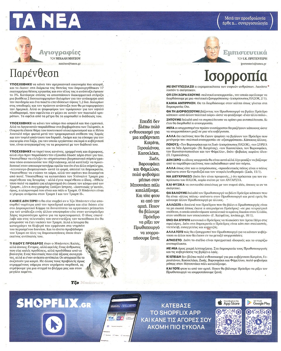 ΤΑ ΝΕΑ - 20 Ιανουαρίου 2025