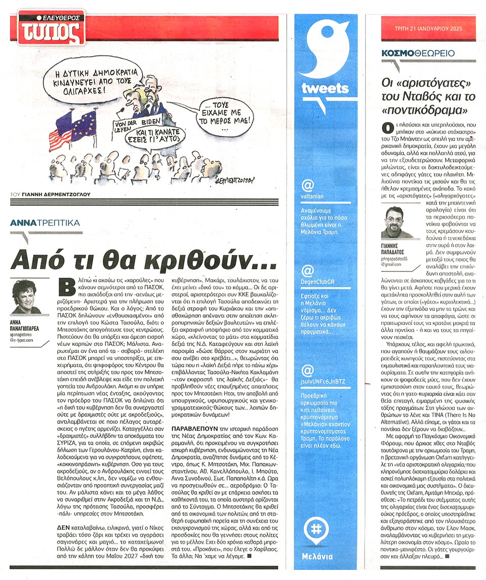 ΕΛΕΥΘΕΡΟΣ ΤΥΠΟΣ - 21 Ιανουαρίου 2025
