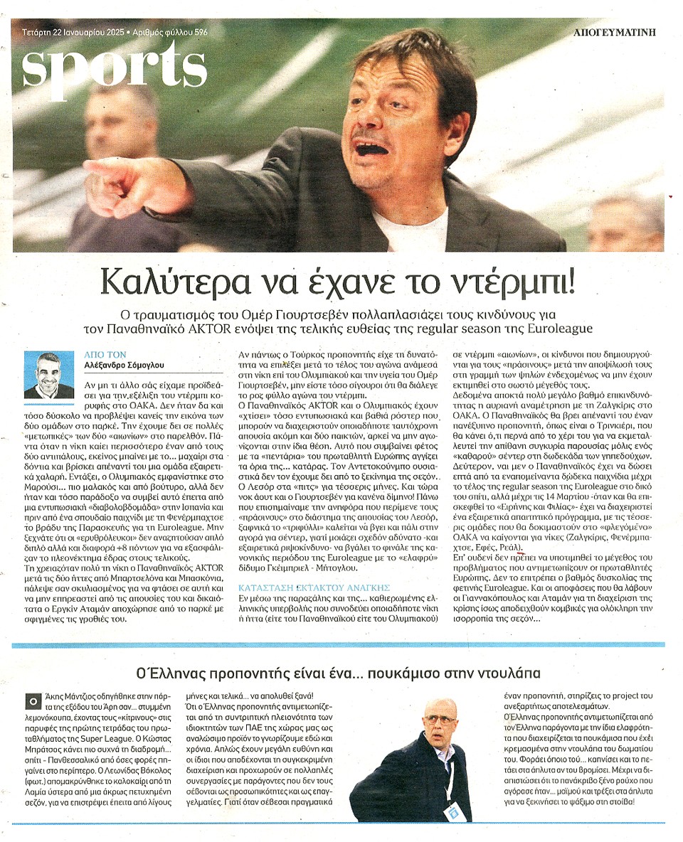 ΑΠΟΓΕΥΜΑΤΙΝΗ - 22 Ιανουαρίου 2025