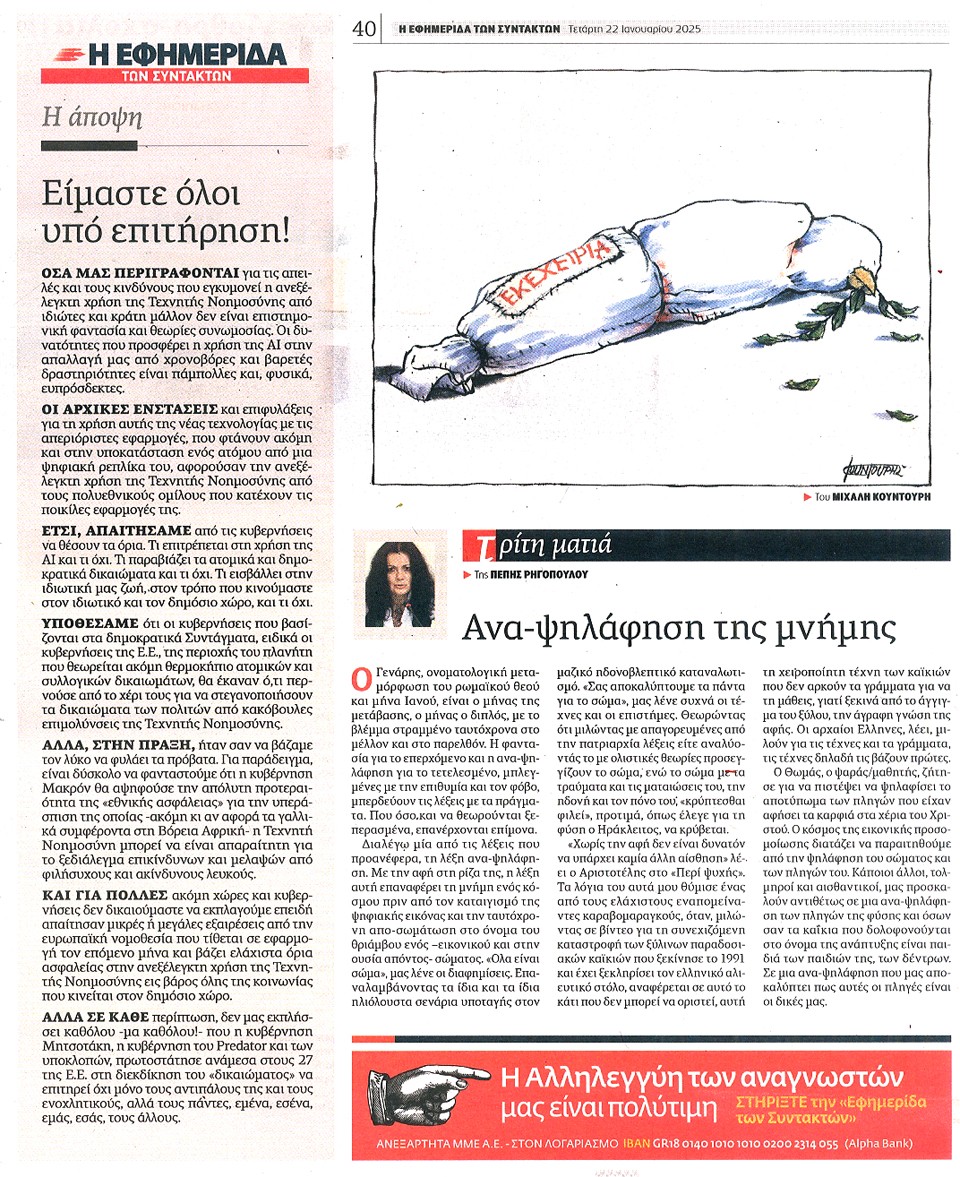 Η ΕΦΗΜΕΡΙΔΑ ΤΩΝ ΣΥΝΤΑΚΤΩΝ - 22 Ιανουαρίου 2025