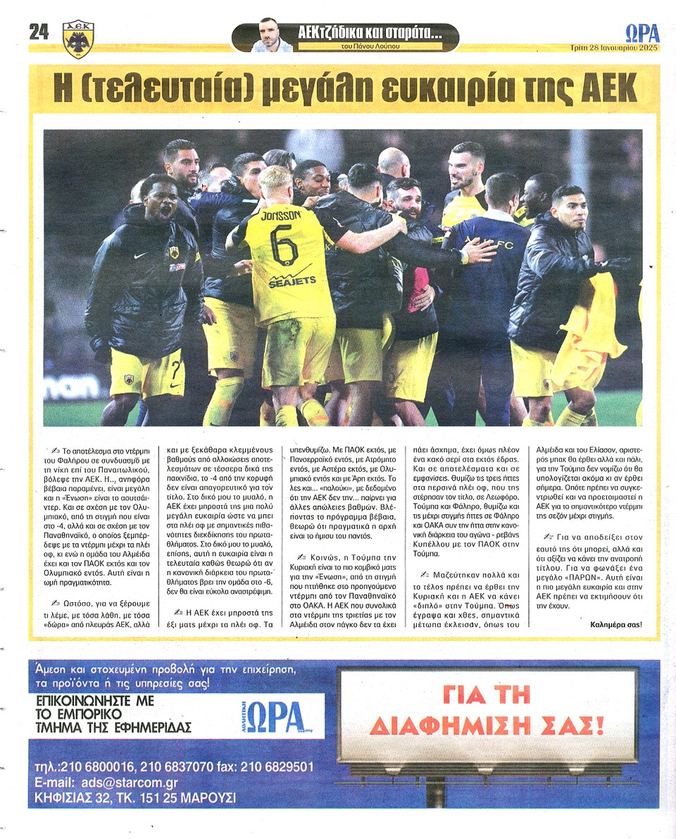 ΑΘΛΗΤΙΚΗ ΩΡΑ ΤΩΝ ΣΠΟΡ - 28 Ιανουαρίου 2025