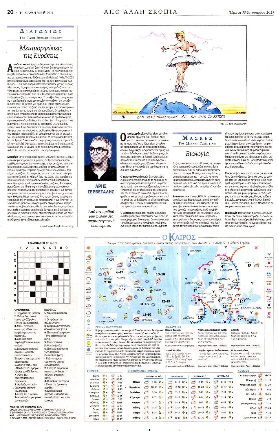 ΚΑΘΗΜΕΡΙΝΗ - 30 Ιανουαρίου 2025