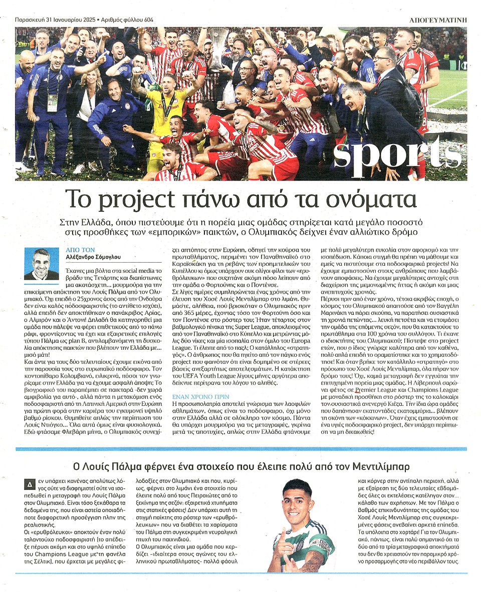 ΑΠΟΓΕΥΜΑΤΙΝΗ - 31 Ιανουαρίου 2025