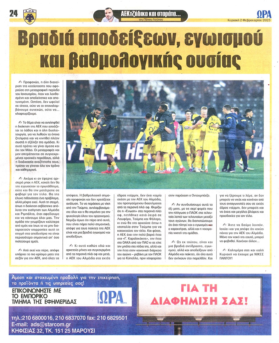 ΑΘΛΗΤΙΚΗ ΩΡΑ ΤΩΝ ΣΠΟΡ - 02 Φεβρουαρίου 2025