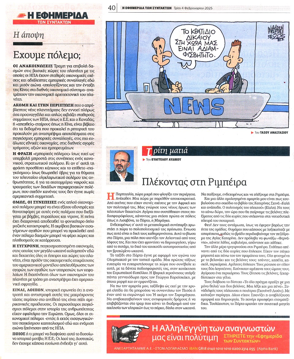 Η ΕΦΗΜΕΡΙΔΑ ΤΩΝ ΣΥΝΤΑΚΤΩΝ - 04 Φεβρουαρίου 2025