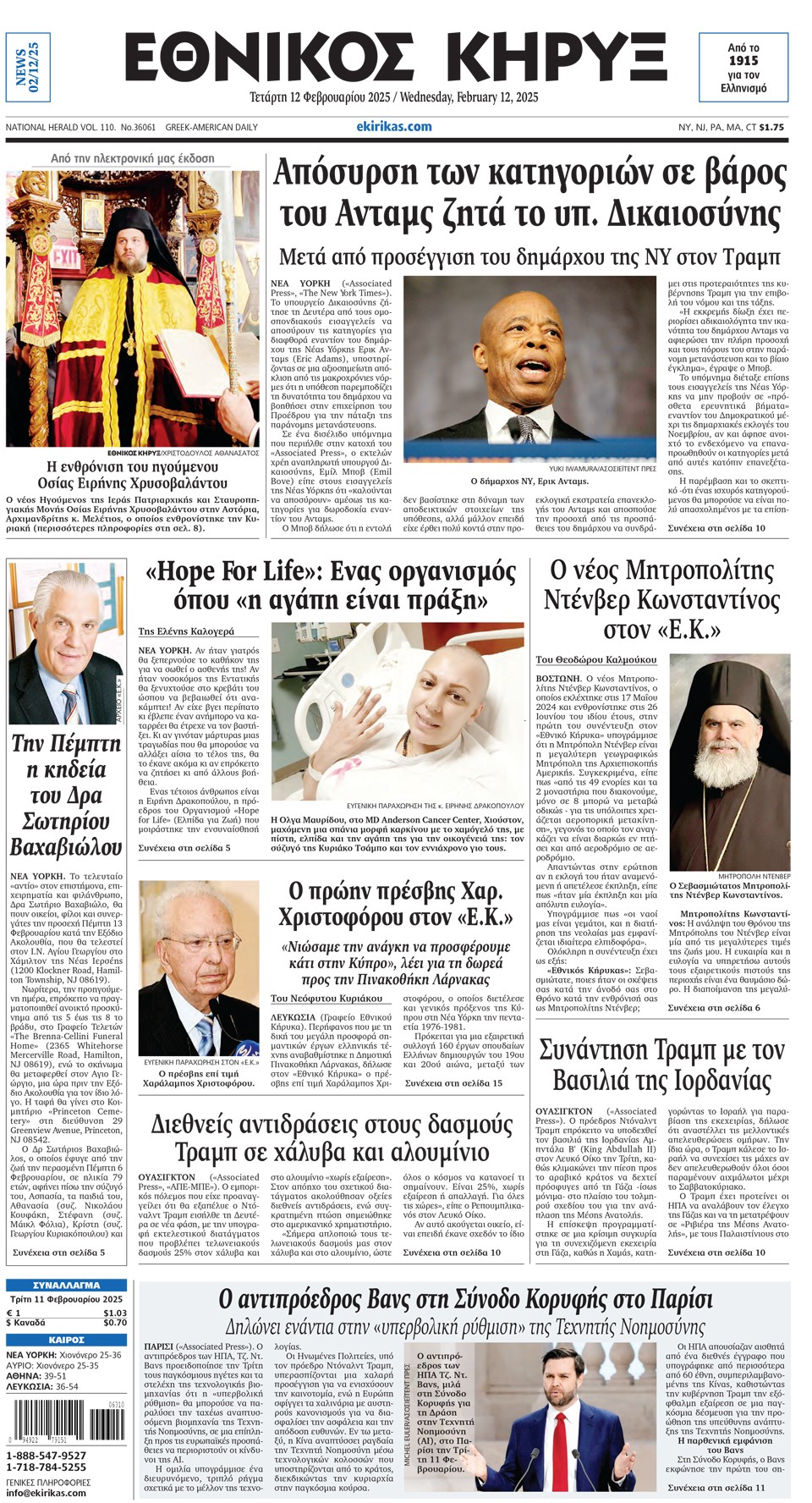 ΕΘΝΙΚΟΣ ΚΗΡΥΞ - 12 Φεβρουαρίου 2025