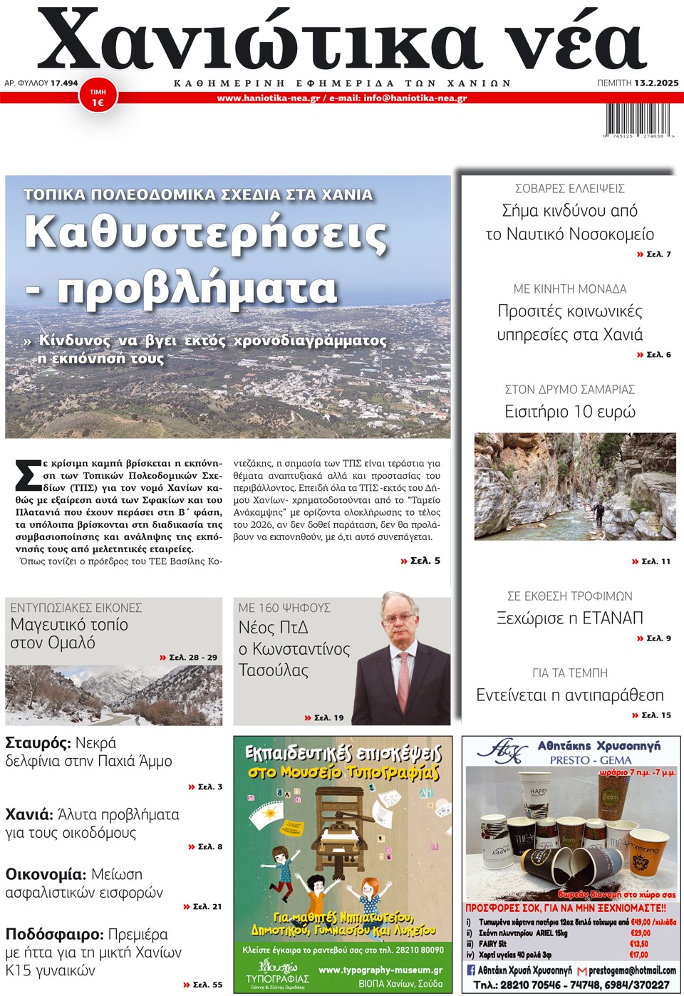 ΧΑΝΙΩΤΙΚΑ ΝΕΑ - 13 Φεβρουαρίου 2025