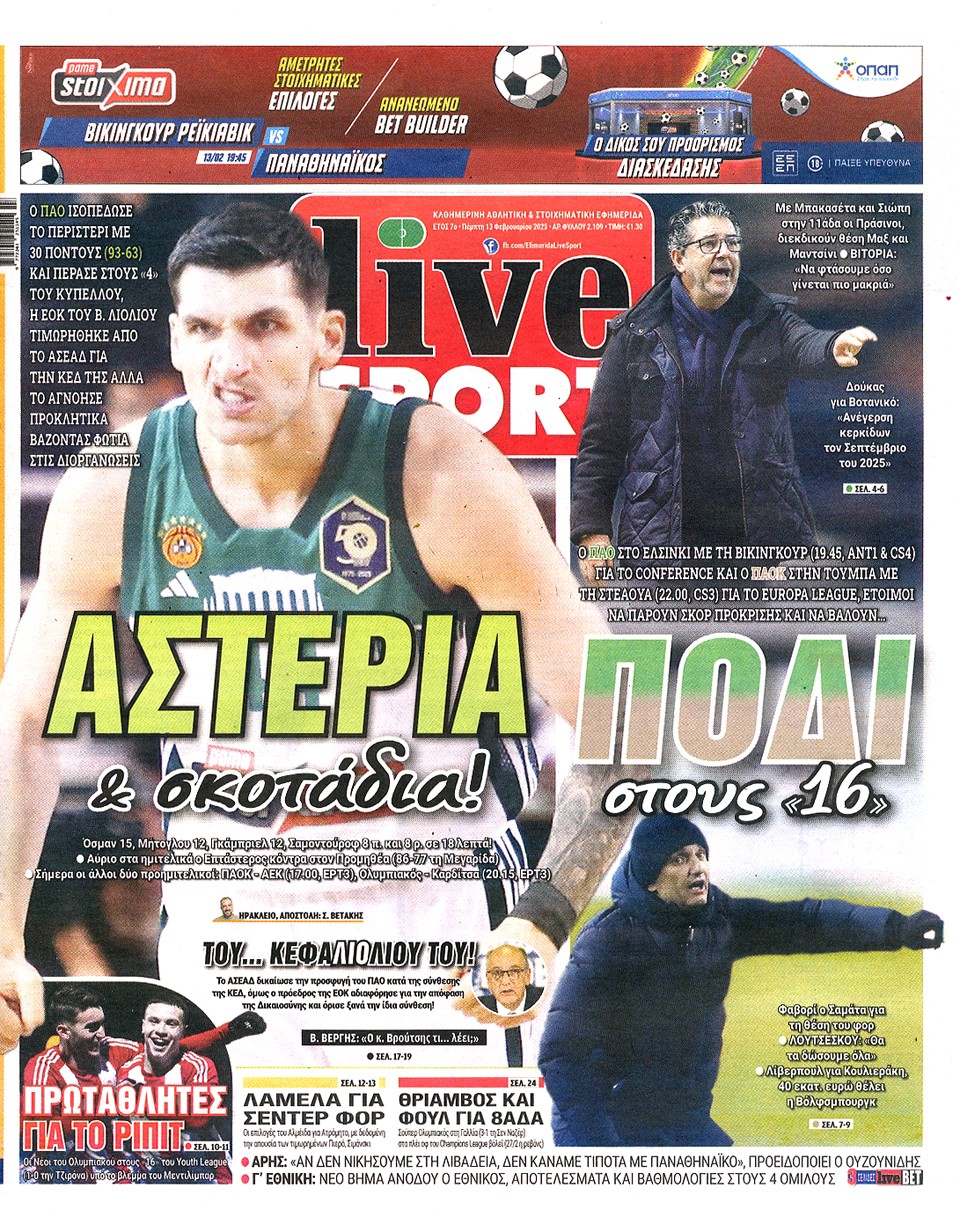 LIVE SPORT - 13 Φεβρουαρίου 2025