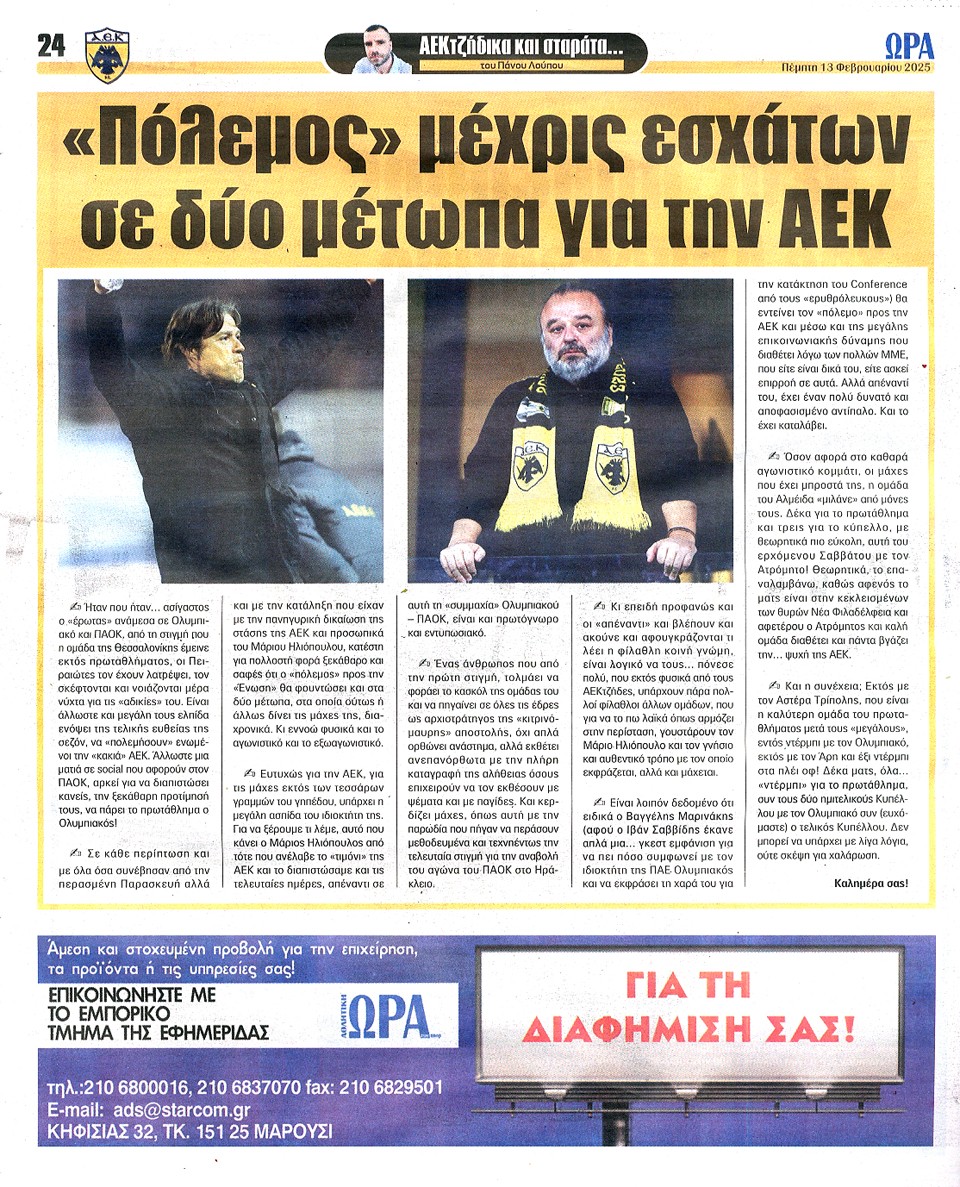 ΑΘΛΗΤΙΚΗ ΩΡΑ ΤΩΝ ΣΠΟΡ - 13 Φεβρουαρίου 2025