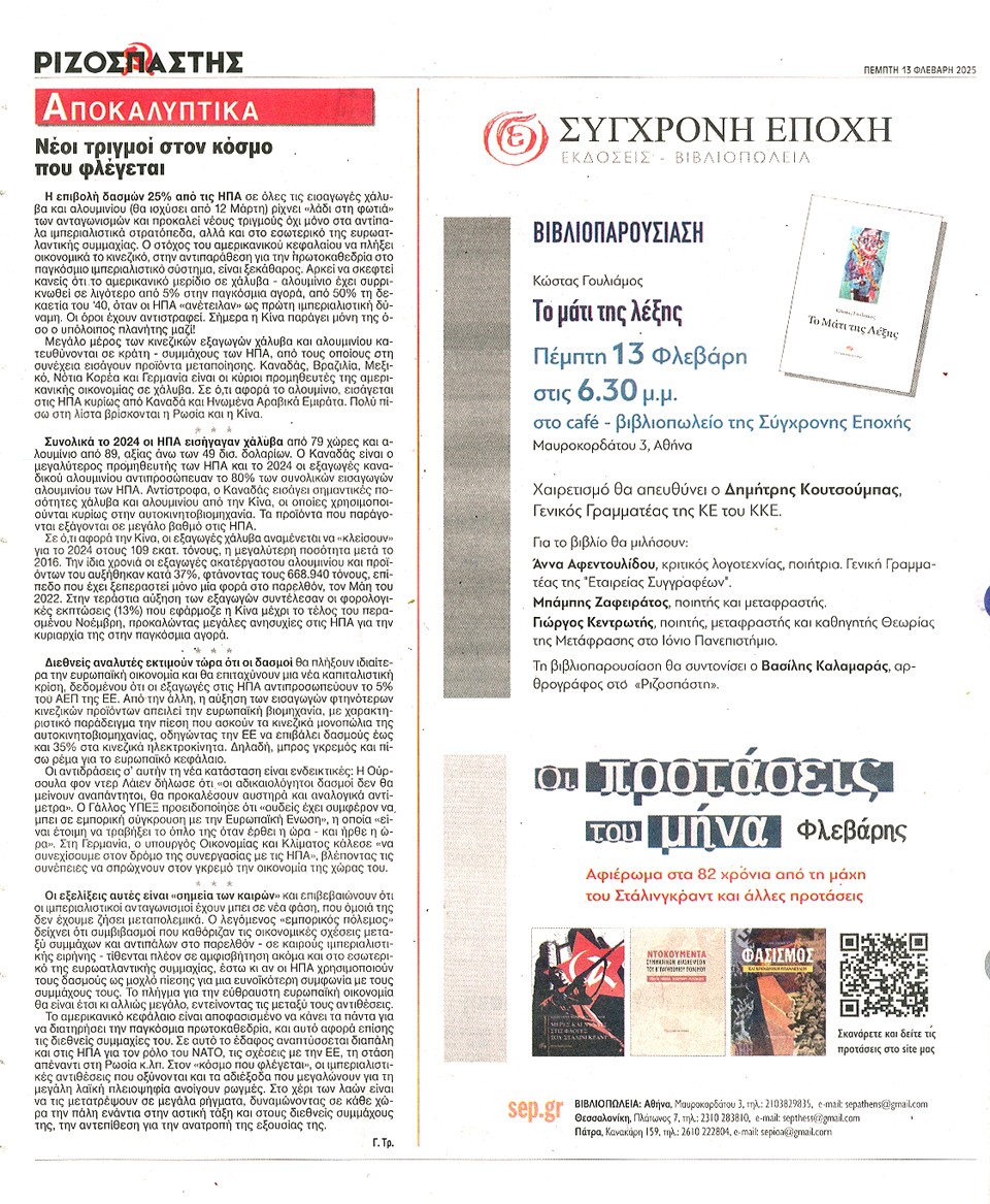 ΡΙΖΟΣΠΑΣΤΗΣ - 13 Φεβρουαρίου 2025