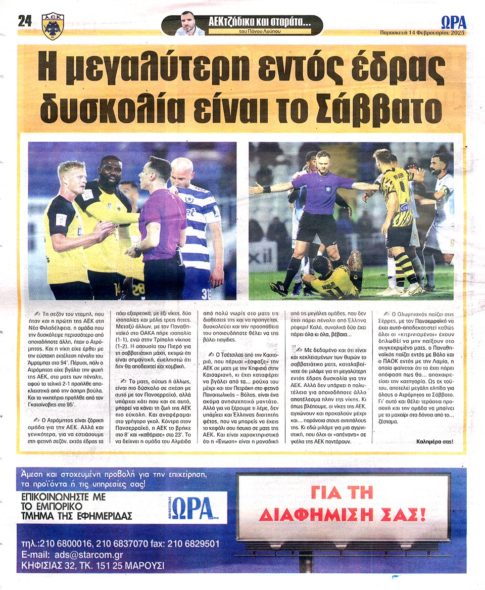 ΑΘΛΗΤΙΚΗ ΩΡΑ ΤΩΝ ΣΠΟΡ - 14 Φεβρουαρίου 2025