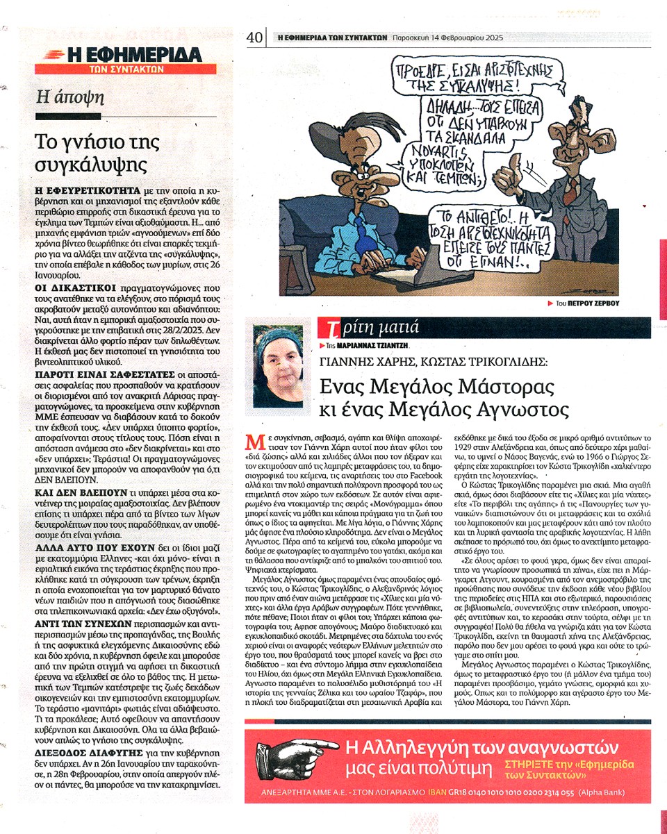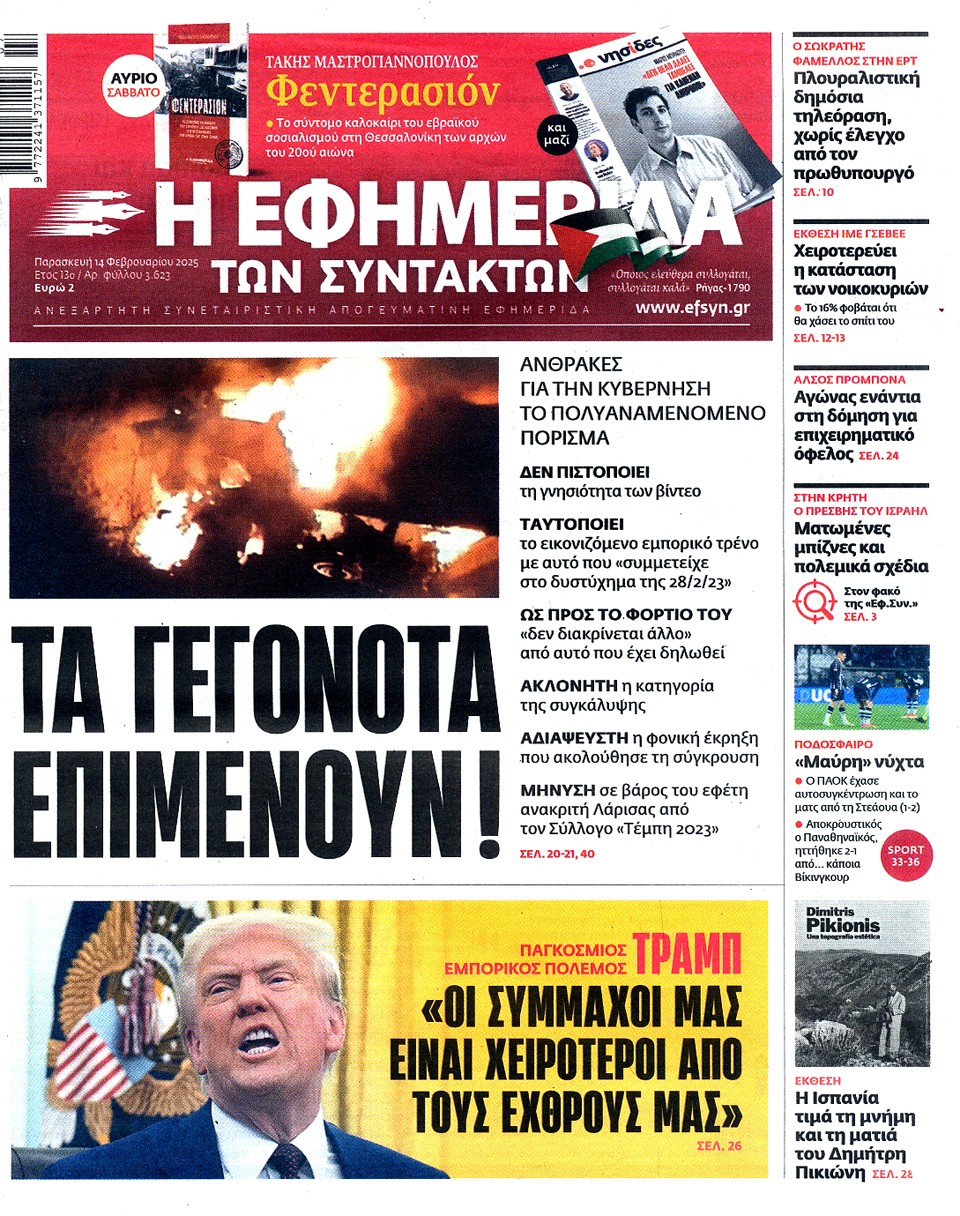 Η ΕΦΗΜΕΡΙΔΑ ΤΩΝ ΣΥΝΤΑΚΤΩΝ - 14 Φεβρουαρίου 2025