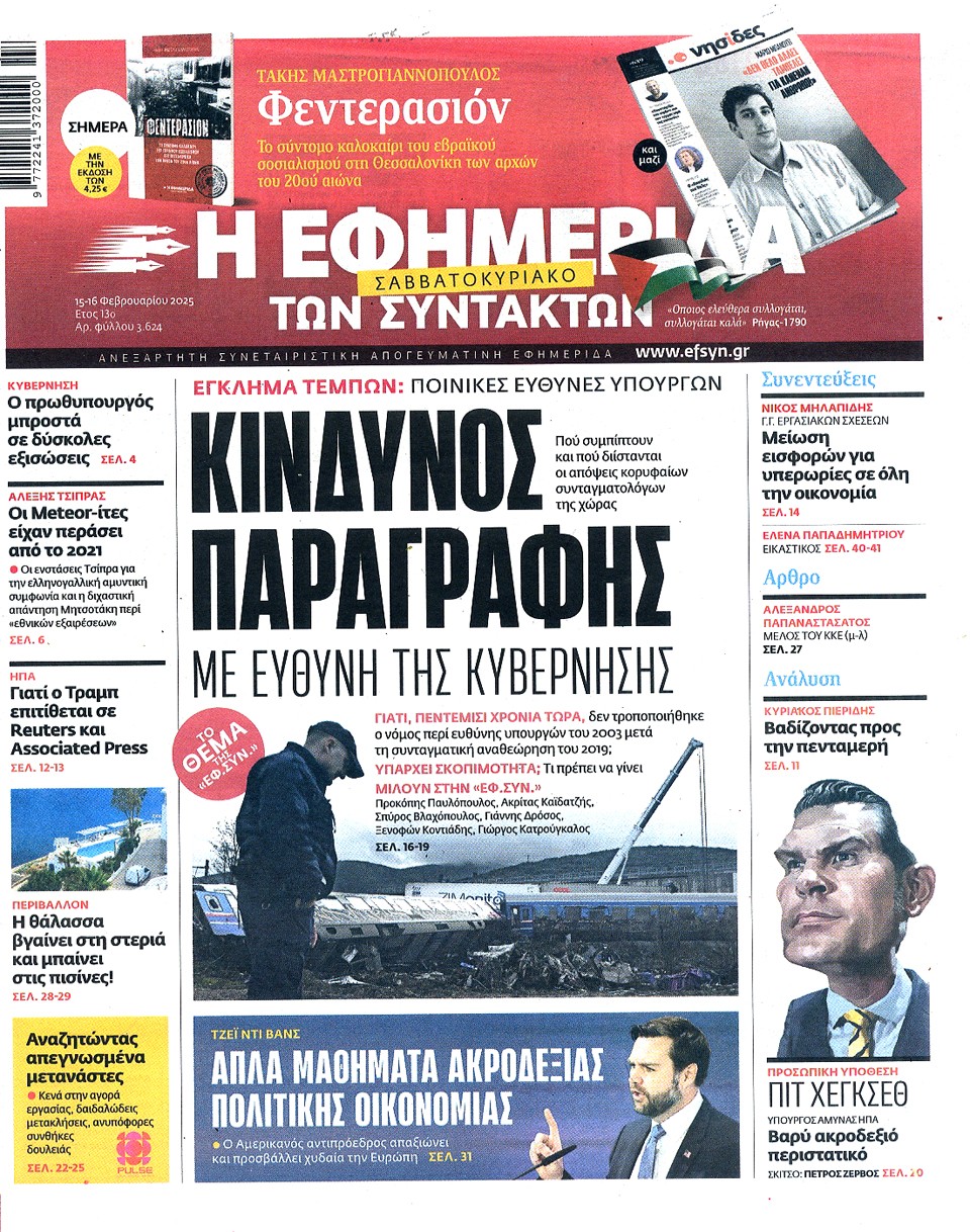 Η ΕΦΗΜΕΡΙΔΑ ΤΩΝ ΣΥΝΤΑΚΤΩΝ - 15 Φεβρουαρίου 2025
