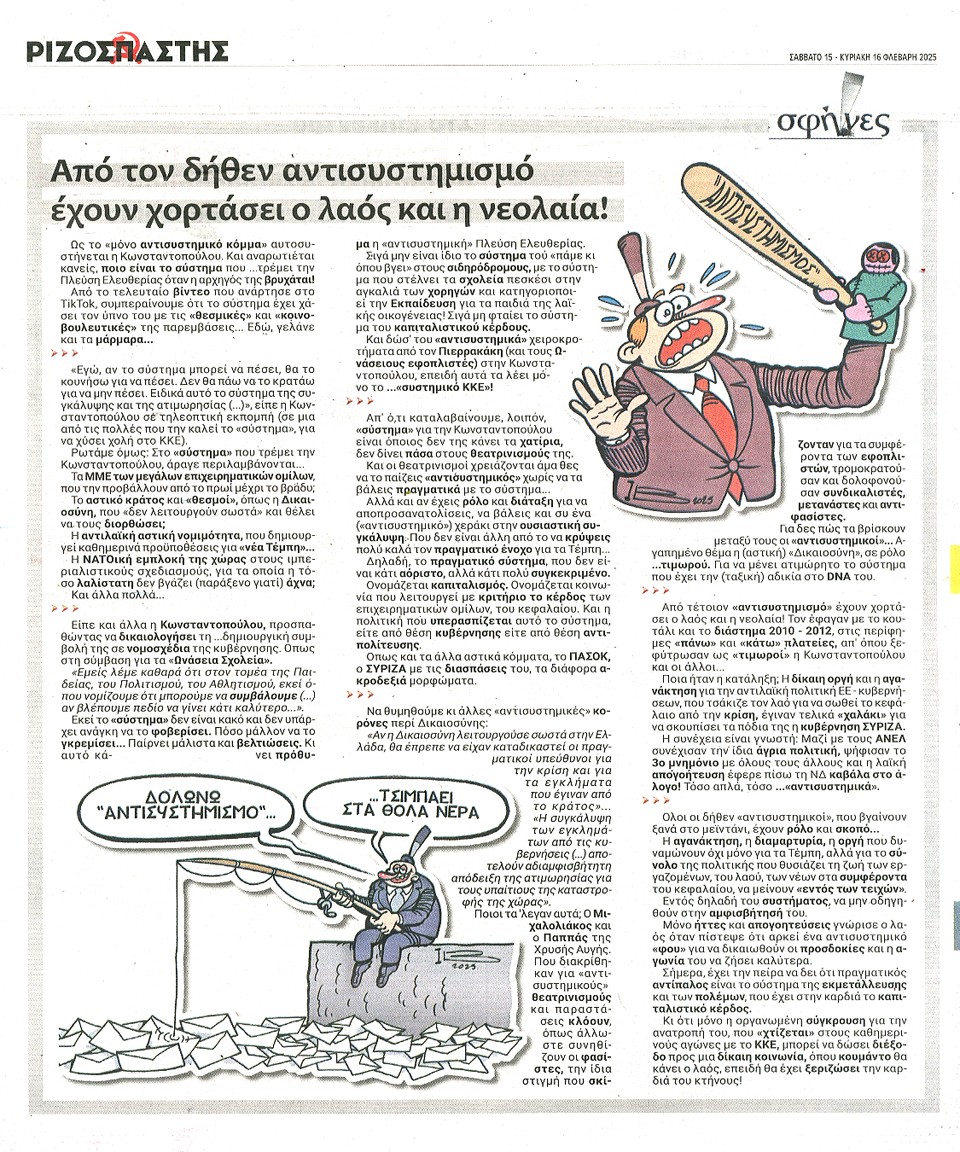 ΡΙΖΟΣΠΑΣΤΗΣ ΤΗΣ ΚΥΡΙΑΚΗΣ - 15 Φεβρουαρίου 2025