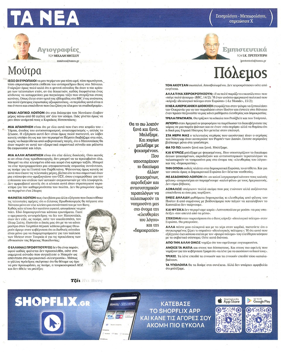 ΤΑ ΝΕΑ - 17 Φεβρουαρίου 2025