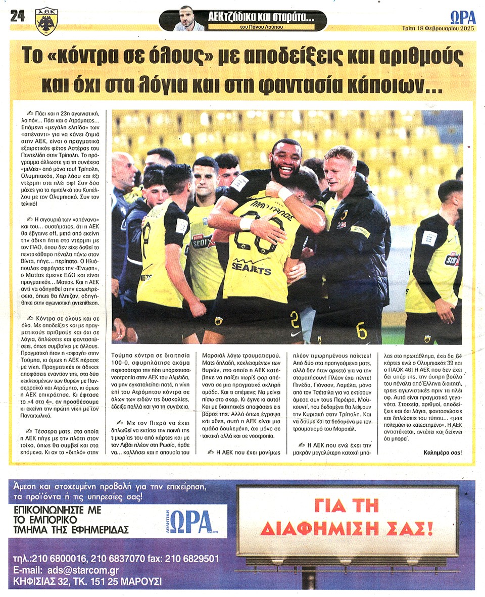 ΑΘΛΗΤΙΚΗ ΩΡΑ ΤΩΝ ΣΠΟΡ - 18 Φεβρουαρίου 2025