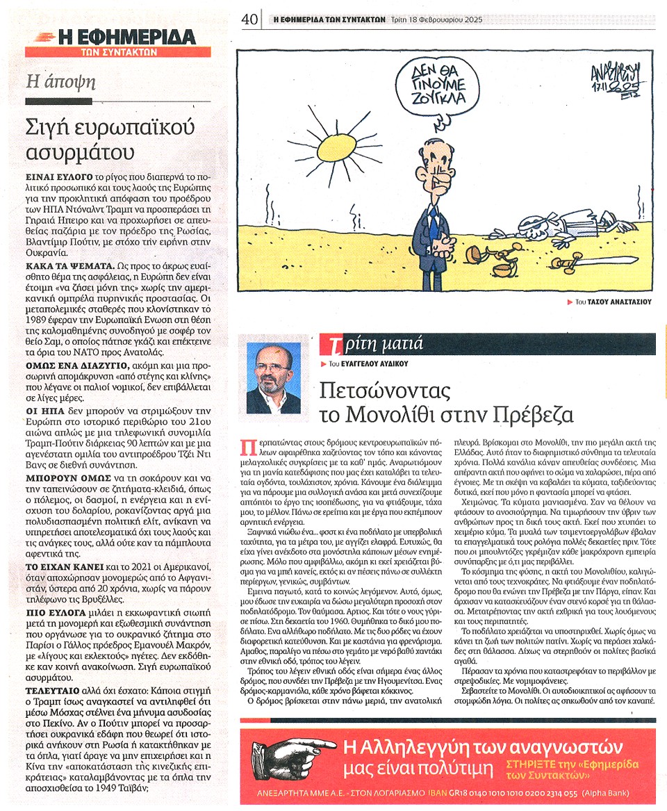 Η ΕΦΗΜΕΡΙΔΑ ΤΩΝ ΣΥΝΤΑΚΤΩΝ - 18 Φεβρουαρίου 2025