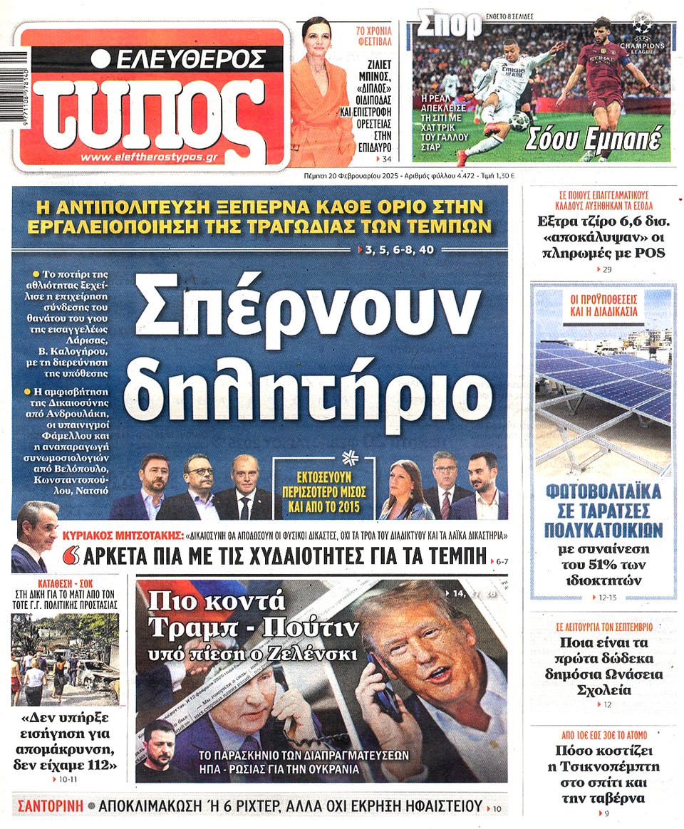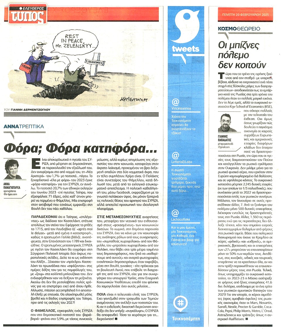 ΕΛΕΥΘΕΡΟΣ ΤΥΠΟΣ - 20 Φεβρουαρίου 2025