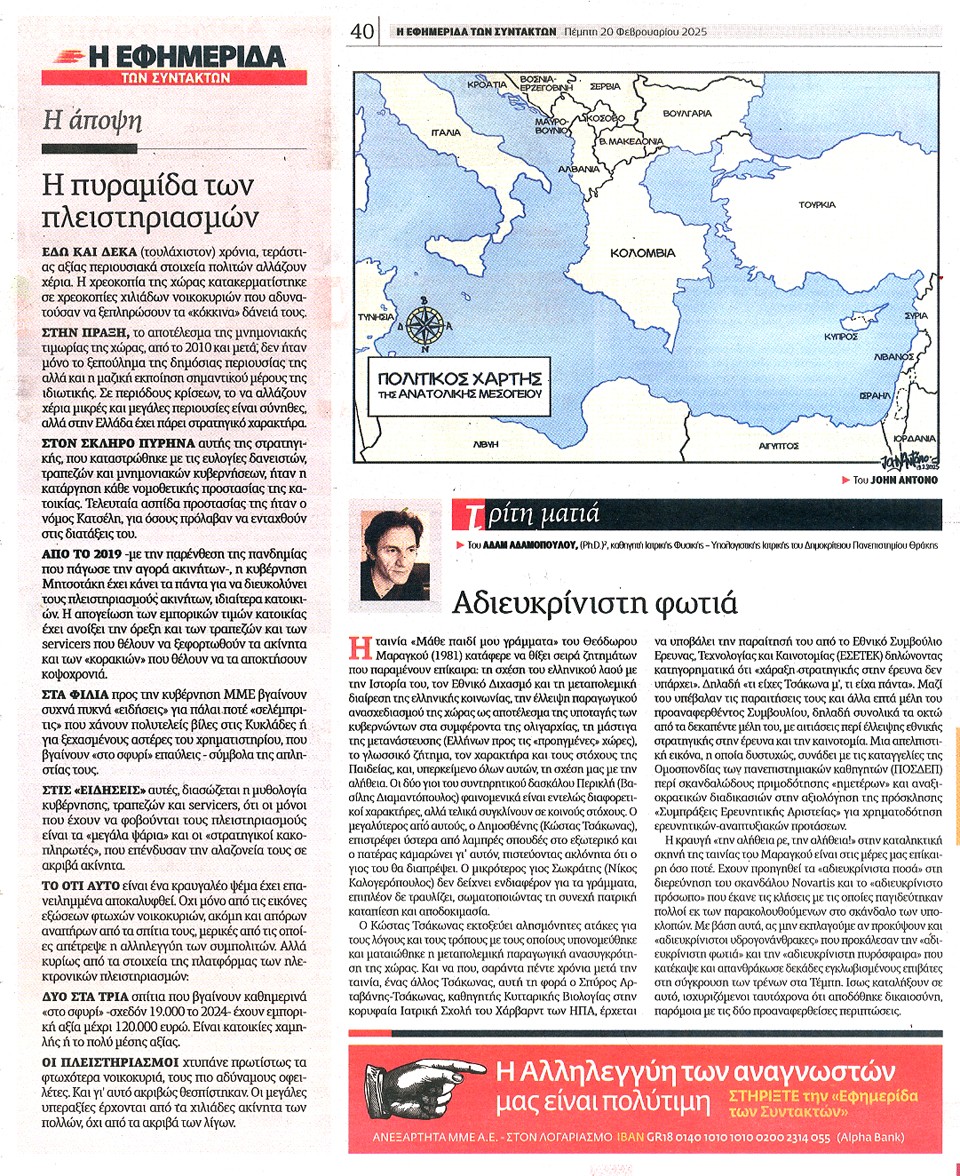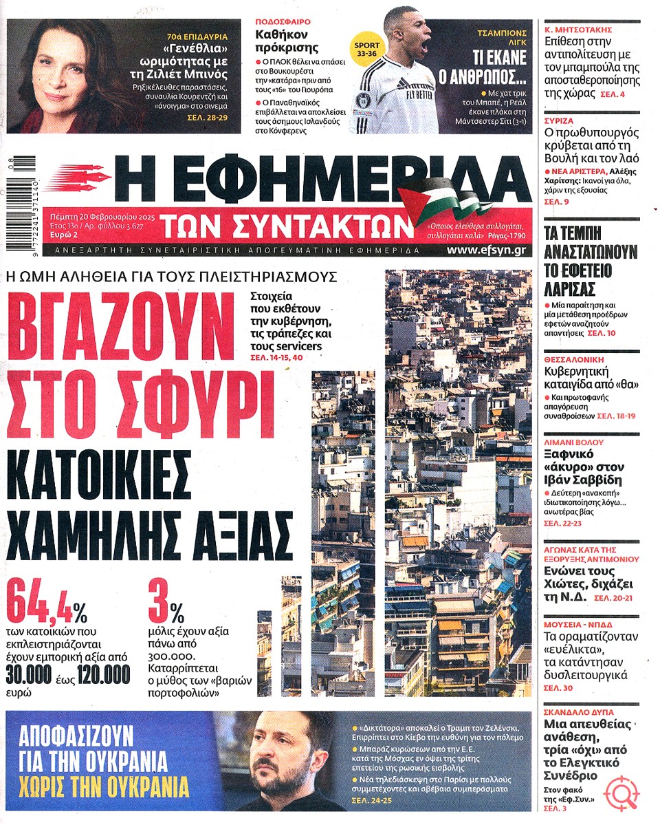 Η ΕΦΗΜΕΡΙΔΑ ΤΩΝ ΣΥΝΤΑΚΤΩΝ - 20 Φεβρουαρίου 2025